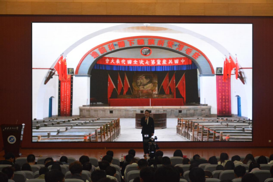 3月6日下午,由校團委和楊家嶺革命舊址管理處、延安魯藝文化中心、八路軍西安辦事處紀念館聯合主辦的“講好黨的七大故事,助力二十大精神學習”主題報告會在鄠邑校區弘石報告廳舉辦。延安楊家嶺革命舊址管理處主任侯振龍、延安魯藝文化中心宣教部部長岳娟、延安楊家嶺革命舊址管理處副主任薛健、我校團委負責人和500余名師生參加了報告會。