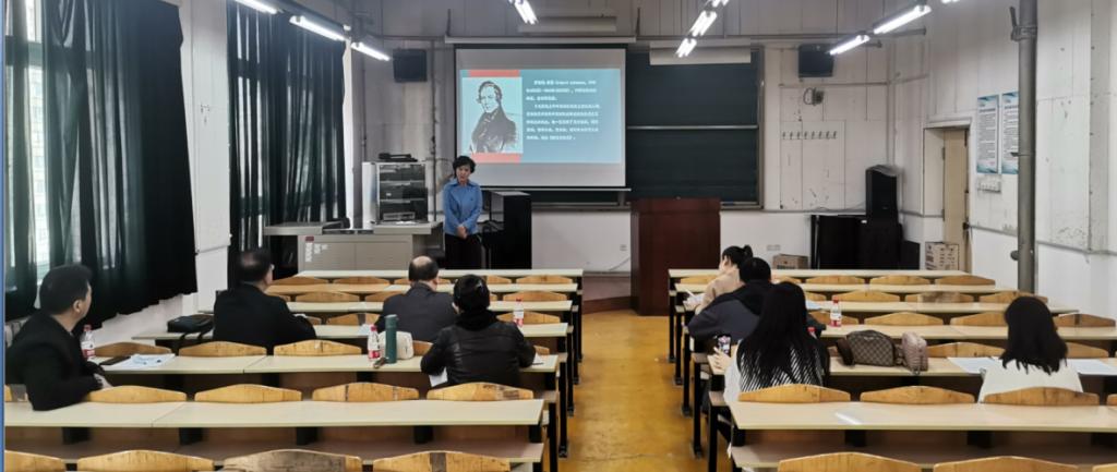 本次思政課教師“大練兵”活動,音樂系通過集體研討、集中備課,在全員參與、觀摩教學的基礎上,從專業特點出發,結合思政元素,將經典紅色革命歷史故事、社會主義核心價值觀、愛國愛校情懷、中國民族優秀傳統音樂文化融入教學中。朱玥老師講授了《聲樂》課程,題目為“中國民族歌劇《江姐》唱段——《紅梅贊》”;薛安玲老師講授了《中外鋼琴藝術作品賞析》課程,題目為“舒曼的音樂人生——《a小調鋼琴協奏曲》賞析”。