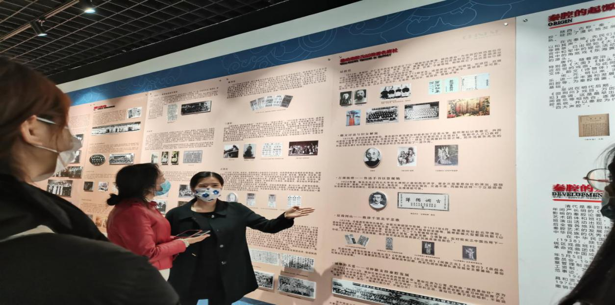 西安交通大學校團委副書記畢曉楠和秦腔傳承基地負責人、秦腔博物館館長李一鳴熱情接待了我校研學師生,詳細介紹了秦腔戲曲、秦腔文化的歷史淵源和西安交通大學秦腔基地作為全國首批及陜西省第一個入選中華傳統文化傳承基地成立五年以來的建設傳承情況。