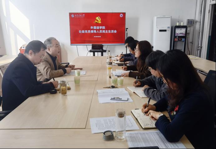 3月3日上午,外國語學院在雁塔校區華油能源樓727會議室召開2022年度處級黨員領導人員民主生活會。副校長陳軍斌出席會議,指導組第四組組長、校黨委組織部常務副部長種宇宏到會指導。學院全體處級黨員領導人員參加會議,院長于艷英列席會議。會議由學院黨委書記田虹霞主持。