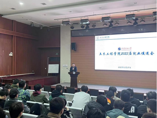 為進一步推動學院畢業生就業工作,引導學院學生正確認識當前就業形勢,轉變就業觀念,珍惜當前春季招聘的時機,實現精準就業和高質量就業,土木工程學院2月28日晚在崇文樓118召開了2023屆畢業生就業促進會,學院黨委書記陳濤受邀參加了會議,全體未簽約畢業生參加了本次就業促進會,會議由輔導員康麒龍主持。