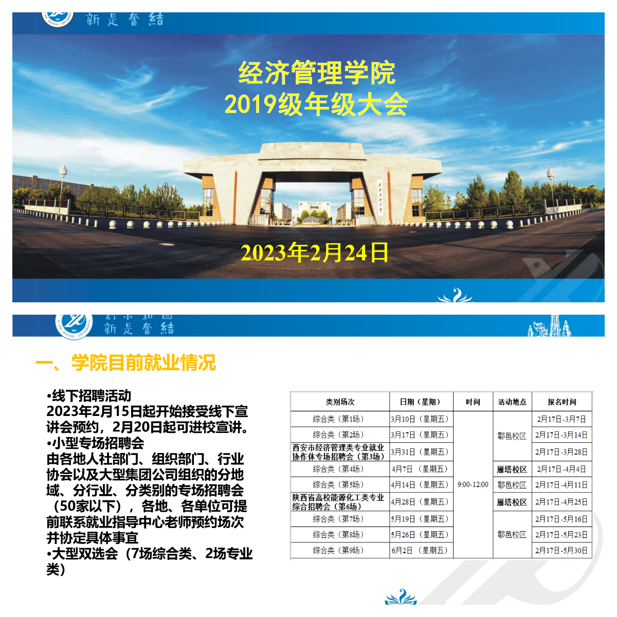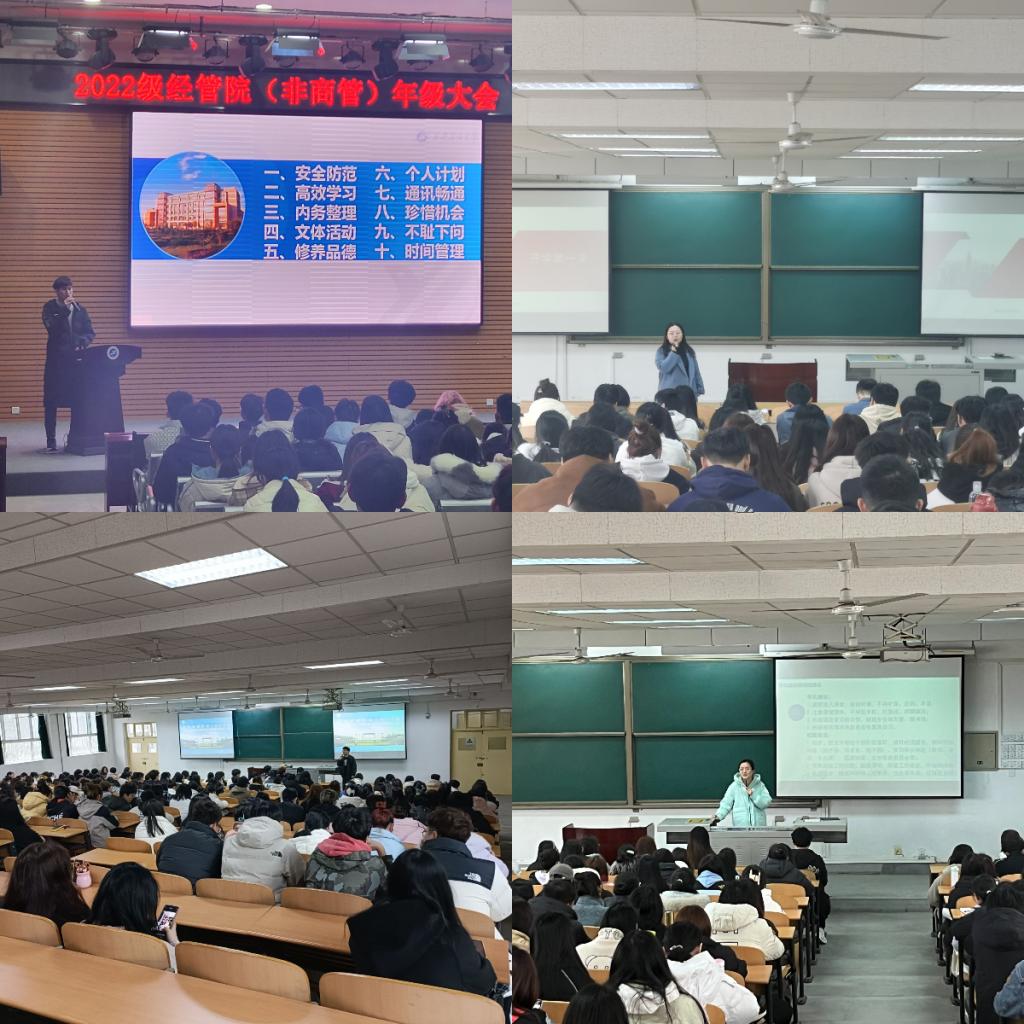 二是統一思想明方向,同心協力樹新風。為更好地推進新學期學生教育管理工作落到實處,及時了解學生思想動態,經濟管理學院于開學第一周召開學生年級大會,會議由各年級輔導員主持,會議內容包括日常管理、誠信教育、學風建設、生涯規劃等方面,督促學生遵守日常管理要求,及時調整學習狀態,合理制定復習方案,誠信從容參加考試,展現經管學子學風嚴謹、學業扎實、態度認真的良好風貌。