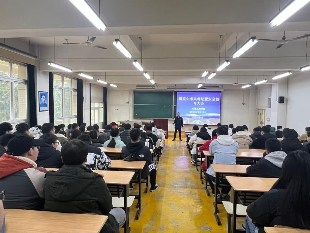 2月22日下午3點,石油工程學院在雁塔校區東階301教室召開2022級研究生考風考紀暨安全教育大會,石油工程學院2022級全體研究生共150余人參加了會議,會議由學院研究生輔導員宋興淼主持。