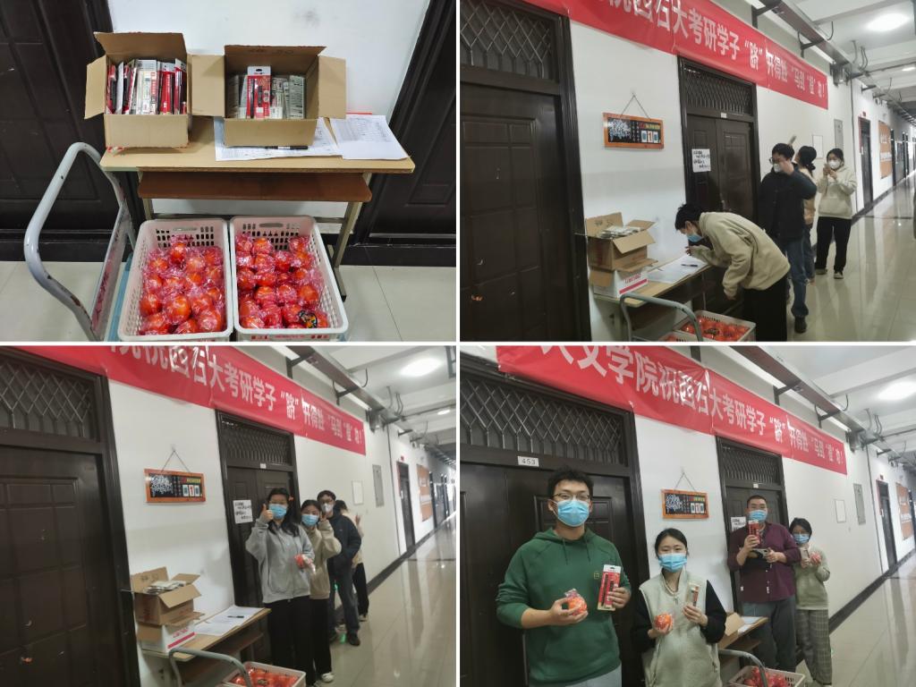 慰問保障,保供生活無憂。今年暑假及12月13日,學院多次開展考研學生慰問,為學生送去慰問水果、文具等物品,了解復習進度,聽取學生建議。同時,為了保證設計學生考試畫材順利送到學生手中,學院多次調查學生困難,聯系因疫情無法配送的快遞,最終保證考試順利。