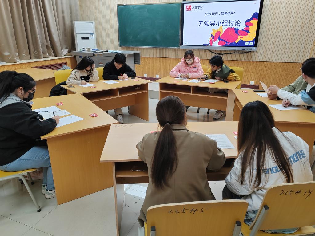 無領導小組討論,增強群面實戰力。為了幫助學生提前適應面試流程,提高面試技巧,規避面試短板,人文學院組織畢業生分組分批開展無領導小組討論模擬群面,學生輔導員擔任評委。模擬面試分為主持人講解面試形式、無領導小組討論、評委總結三個環節。模擬討論中,同學們根據選題,結合生活常識、知識積累、職業理解各抒己見,討論過程熱烈,匯報條理清晰。討論結束后,評委總結無領導小組討論的注意事項,對表現優異的參與學生給予表揚,對存在短板的同學加以鼓勵。同學們在模擬面試中深化了對團體面試的認識和理解,了解了面試禁忌,明確了在以后的面試中適合承擔的角色。