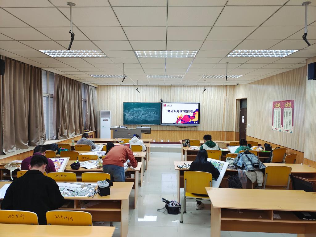 沙場練兵,磨煉實戰技能。為幫助學生熟悉考試流程,提高繪畫考試技巧,11月29日下午2點,學院組織考研學生在人文經管樓235教室開展時長3小時的業務課2模擬考試。考試中,學生合理規劃時間、優化設計思路,呈現出多樣的作品。考試后,學院組織專業老師進行點評指導,幫助學生查漏補缺,完善作品。