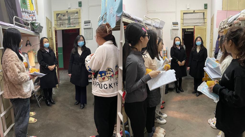 11月27日晚,院黨委書記田虹霞、副院長劉輝一行,深入雁塔校區學生公寓看望慰問在校研究生,了解學生面臨的實際困難,并為學生送去醫用口罩、蘋果等慰問品。研2021級輔導員陶李陪同走訪。