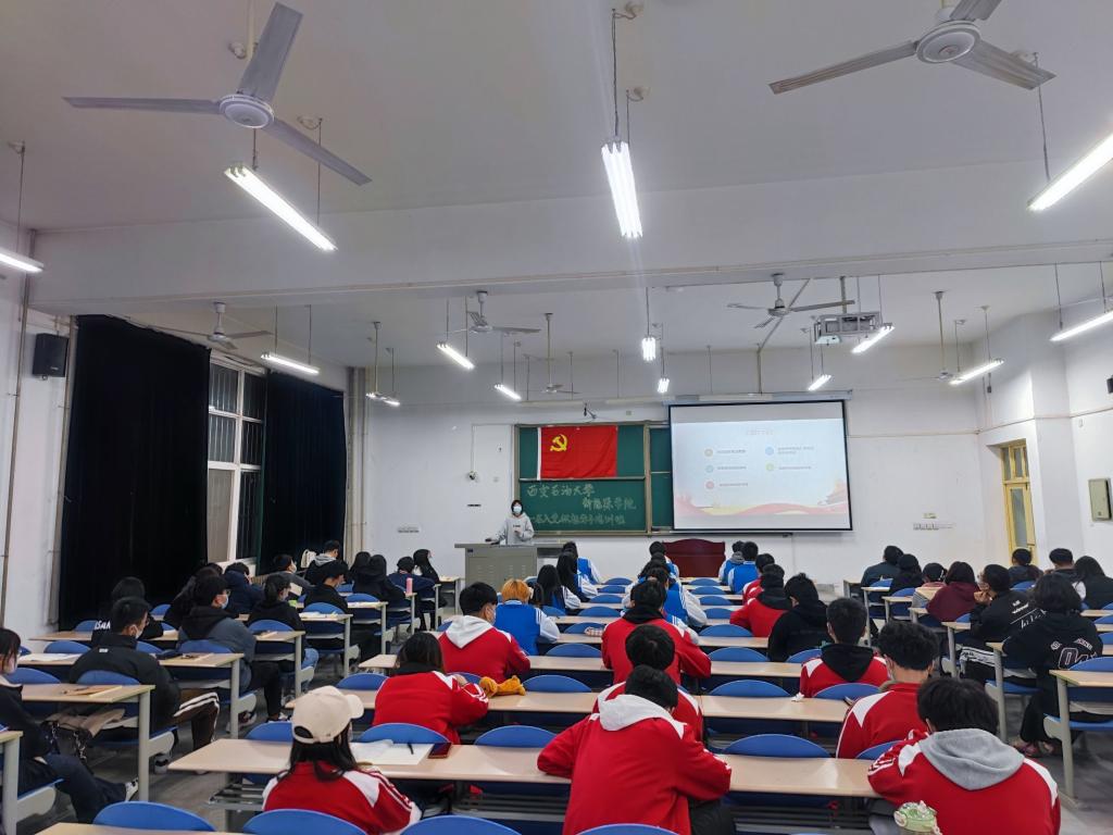 11月18日晚,培訓班第十講“堅定信念—爭做矢志報國的新時代‘綠能’先鋒”在鄠邑校區天工樓115室舉行,學院黨委書記宋海洋擔任主講。宋海洋從賡續紅色血脈、傳承奮斗精神,百年大黨的青年擔當,新時代青年的新使命,搭建青年創新平臺、助力青年成長成才等四個方面,引導同學們要清醒地認識到不論過去、現在還是未來,中國青年始終是實現中華民族偉大復興的先鋒力量,作為青年人要始終與祖國共奮進,堅定跟黨走。最后,宋海洋從學校的石油精神,黨的革命精神,青年學子的擔當等方面為同學們進行深入淺出的講解,他叮囑同學們要時刻秉承西石大的精神基因,勇做具有寬廣格局、全球視野、創新思維和創新能力的新時代負重前行的開拓者。