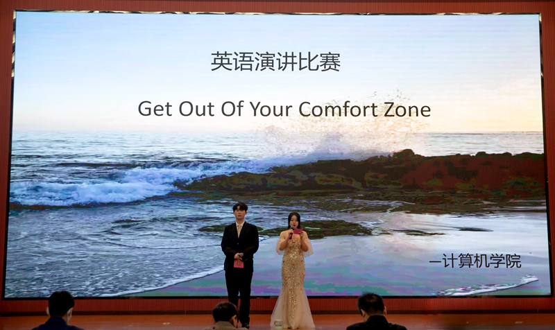 為落實立德樹人根本任務,進一步加強學風建設,提高同學們英語學習的積極性,營造濃郁的英語學習氛圍,計算機學院于11月11日晚在鄠邑校區圖書館弘石報告廳舉辦以“走出你的舒適區”為主題的大學生英語演講比賽。比賽評委由學校國際交流與合作處副處長王文化教授、計算機學院黨委副書記龐遠、2020級輔導員劉亭普、2022級輔導員姚謙、研究生2022級輔導員高嘉祺及上屆比賽獲獎同學劉玉佳等擔任。