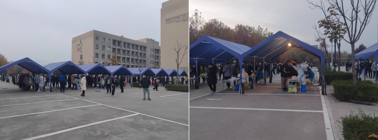 針對鄠邑校區學生宿舍樓分布情況,學生工作部(處)、鄠邑校區管理辦公室積極響應學生訴求,聽取各方意見,組織實地調研,開展評估論證和研討,在原有西區核酸檢測點的基礎上新增“東區核酸檢測點”,場地設立在開物樓東側停車場(原迎新點)。同時,調整學生組織方式,不斷優化師生員工核酸檢測體驗感,提升學生滿意度,尋求“最優解”。