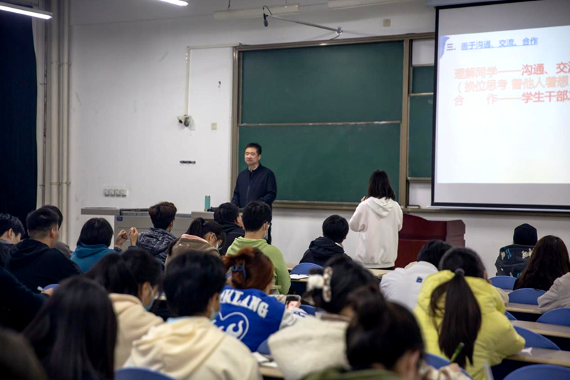 為進一步提升學生干部素質能力,持續推進班級建設工作,11月9日晚,計算機學院在鄠邑校區B101教室組織召開了學生干部培訓會。學院黨委副書記龐遠、2020級輔導員劉亭普、2022級輔導員姚謙和2022級、2021級全體學生干部參加了本次培訓會。會議由2022級輔導員姚謙主持。