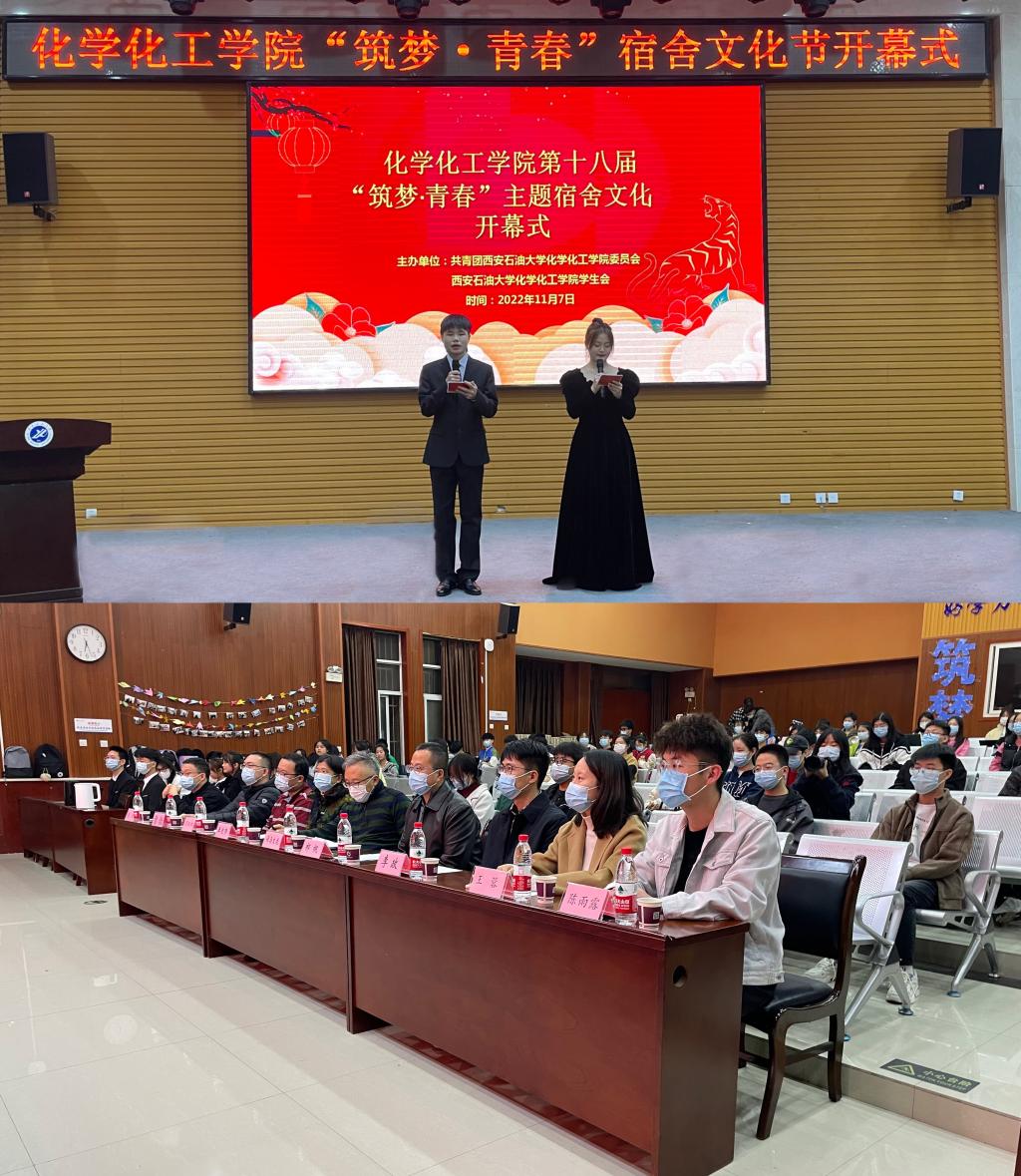 為進一步加強宿舍育人陣地建設,充分挖掘宿舍文化育人功能,促進學生健康成長和全面成才,11月7日晚,化學化工學院第十八屆“筑夢·青春”宿舍文化節開幕式活動在鄠邑校區崇文樓118多功能報告廳順利舉辦。學院黨委書記司馬文龍、院長王文珍、學院黨委副書記祁帆、學工辦主任周鈺桐,校團委干事李政出席開幕式活動。學院各年級輔導員及部分學生代表共同參加。