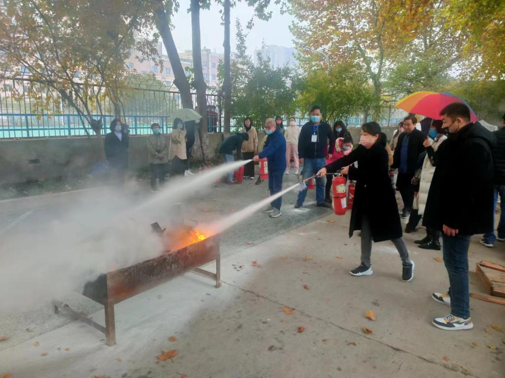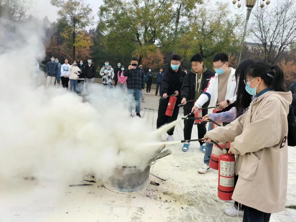 活動期間,保衛處工作人員講解了掌握滅火技能的重要性,滅火器的種類、工作原理、操作步驟以及使用過程中需要注意的細節,并演示了使用干粉滅火器撲滅初起火災的操作方法和技巧。在滅火器操作演練中,大家五人一組,積極參與,按照一搖、二提、三拔、四握、五壓的程序,體驗正確使用滅火器的方法和步驟。