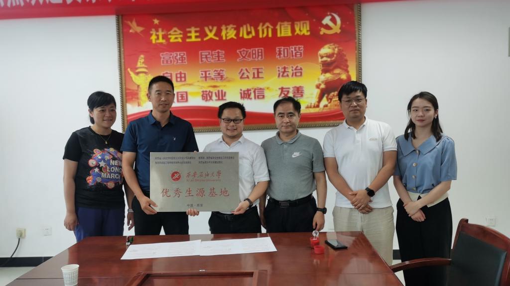 隨后,李壽邦主任對陜西商丹高新學校長期以來為我校輸送優質生源表示感謝,并希望借此次優質生源基地授牌的機會,加強雙方的進一步合作,為培養優質人才共同努力,希望學校能夠多多宣傳西安石油大學,讓更多的學生了解西安石油大學??萍继幐碧庨L孫會珠介紹了我校的歷史沿革、學科專業、院系設置、師資隊伍以及科研業績等內容,著重強調了我校的辦學特色和優勢學科,希望雙方能夠進一步加強溝通和交流。