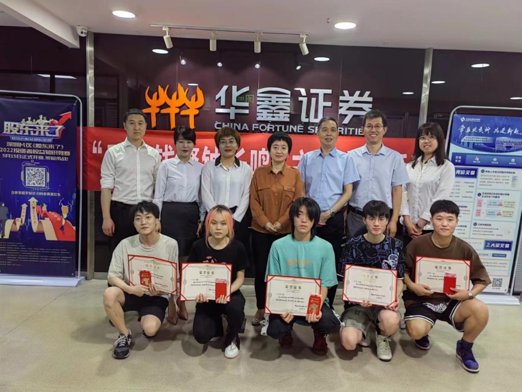 6月2日,經濟管理學院第二屆證券模擬交易大賽頒獎典禮在華鑫證券西安南二環營業部舉行。經濟管理學院黨委書記王宏衛、經濟學系系主任李春霄,華鑫證券西安南二環營業部總經理廖聲隆、合規風控經理高軍、財富總監劉智慧、業務拓展部經理蔣雯麗以及比賽獲獎的6名同學出席頒獎典禮。