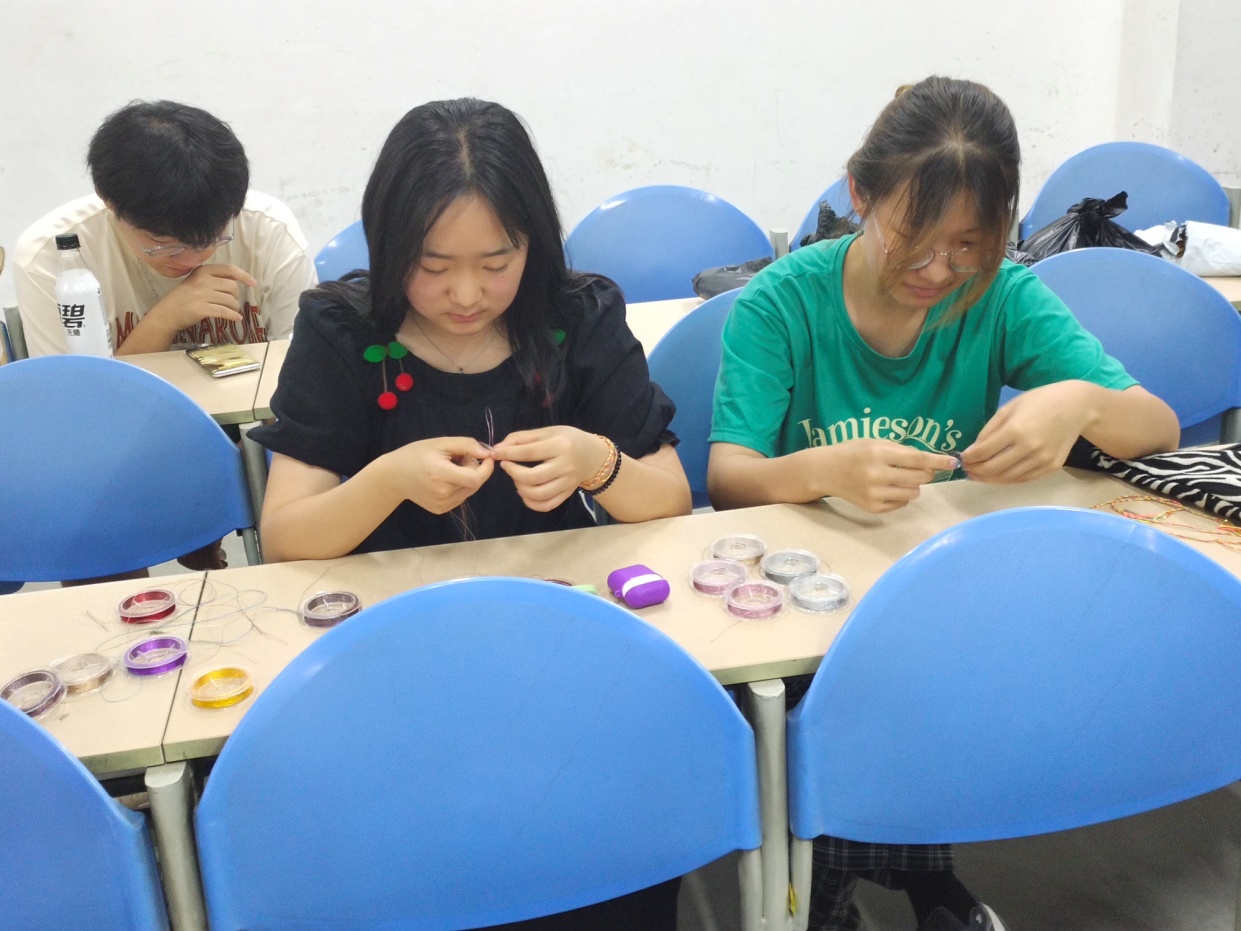 在活動上,該院黨委副書記畢軼慧老師首先為參加活動的部分學生介紹了端午節的起源以及習俗。聽完關于屈原、粽子、賽龍舟的講述,學生們對端午節有了更深入的了解。隨后該院團學老師與學生共同參與到縫香包編五彩繩的活動當中,同學們在各位老師的帶領下,紛紛挽起袖口拿起針線、裝進香草,縫制得有模有樣。