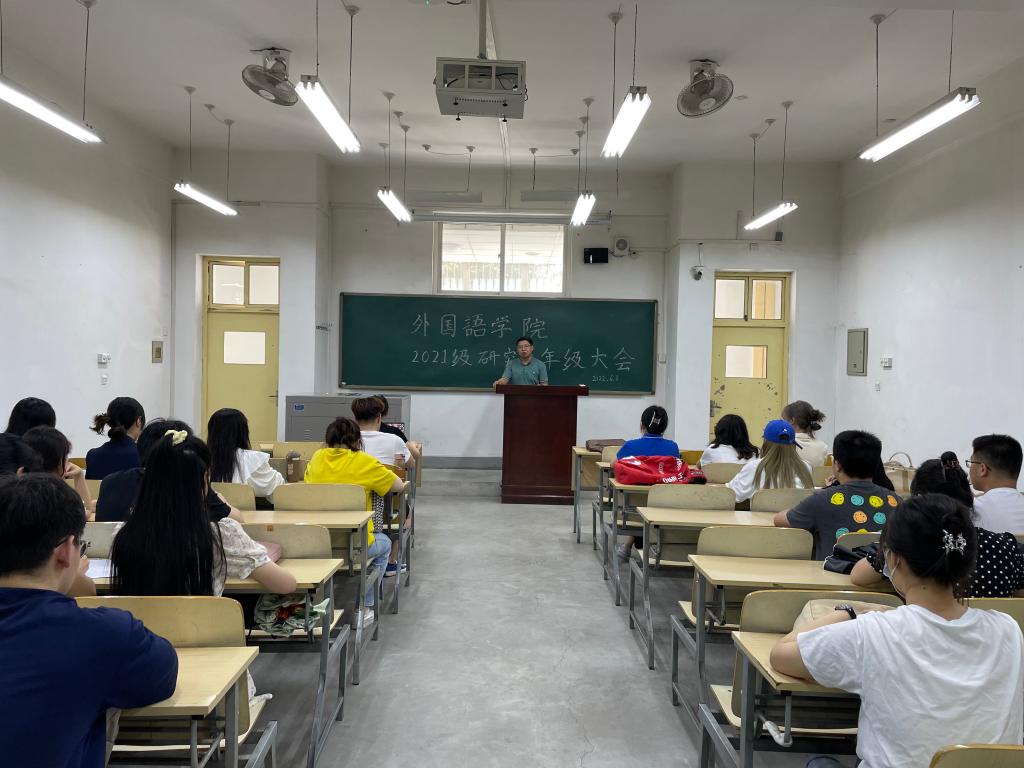 6月1日下午,外國語學院在鄠邑校區A123召開2021級研究生年級會議。院黨委副書記王業青參加并指導本次會議,會議由輔導員陶李主持,2021級全體研究生參加。