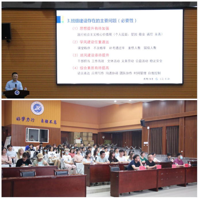 龐秉謙副部長圍繞加強班級建設的重要性和必要性、如何做好班級建設工作以及如何做一名優秀的班級學生干部三個方面展開培訓。他指出,加強班級建設對推動落實立德樹人根本任務,踐行“為黨育人、為國育才”使命具有重要意義,當前班級建設在思想提升、學風建設、班風建設、綜合素質等方面依然存在不足。他強調,加強班級建設一是要配齊配強班級“兩委”干部,做好學生干部的推薦、選拔和換屆工作;二是要規范班級工作的日常運行機制,以思想建設和作風建設為重點,定期開展集體學習研討;三是要制定目標計劃,總結經驗不足,有針對性加強能力培養,提升班級建設工作的實效性;四是要根據班級實際情況,制定年度建設目標計劃,明確分工、責任到人,跟蹤完成情況,及時反饋調整優化。