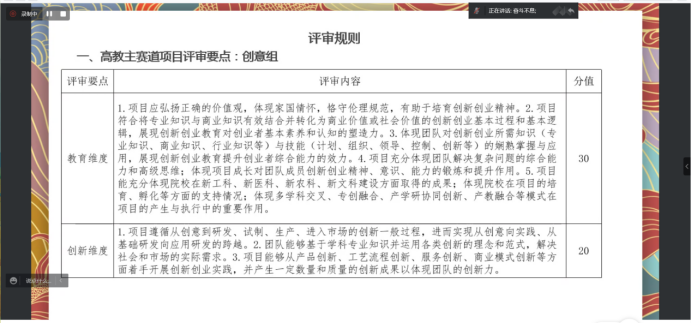 整場講座干貨滿滿,使參賽師生進一步了解評審規則,學會根據評審要點完善項目策劃書及PPT,各參賽團隊不斷突破自我、挖掘潛能,以更加完善的項目積極備賽!