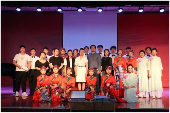 寇麗麗老師帶領20多名學生用聲樂表演的不同形式給大家展現了一場視覺和聽覺的藝術盛宴。其中女聲小合唱《茉莉花》、男女二重唱《等著我親愛的人》、2019級袁琦璟同學演唱的流行作品贏得了在場老師和同學的熱烈掌聲。男聲小合唱《我為祖國獻石油》刻畫了石油工人的灑脫、樂觀和自豪感,同學們用歌聲來致敬用青春堅守在油田基層的石油人。整場公開課在男女小合唱《愛我中華》結束,他們用青春致敬,用感恩詠頌偉大的祖國!整個公開課通過對聲樂不同唱法的講解、互動、鑒賞和現場表演等方式,讓同學們度過了一個美好的下午。