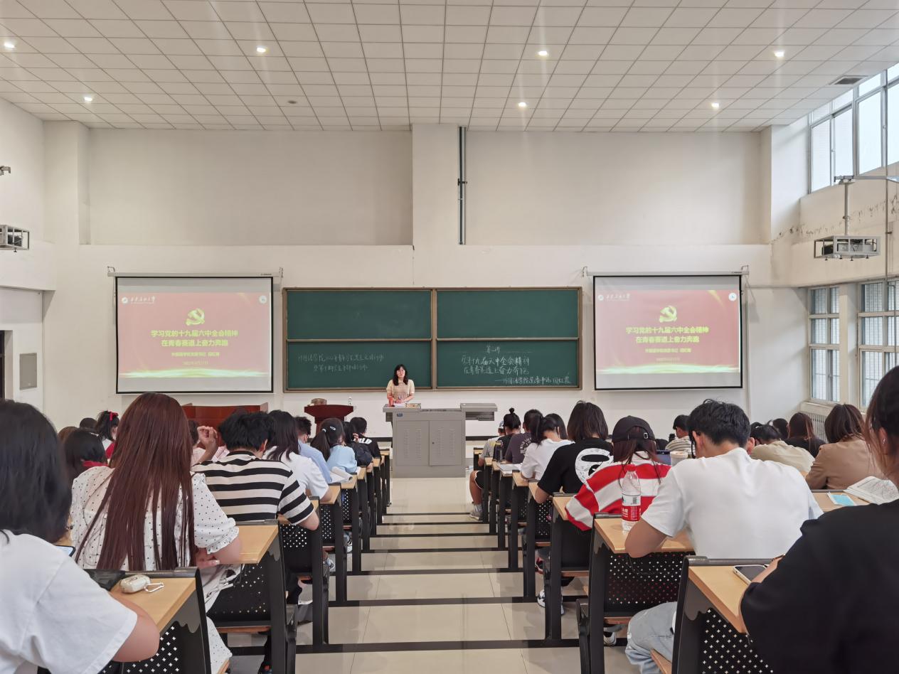為深入學習貫徹習近平總書記重要講話精神和黨的十九屆六中全會精神,引導青年學生堅定理想信念,樹立遠大目標,做新時代的見證者、參與者和建設者。5月17日晚,外國語學院黨委書記田虹霞在鄠邑校區開物樓115教室為學院本科生講授了題為《學習黨的十九屆六中全會精神,在青春賽道上奮力奔跑》的專題思政課。