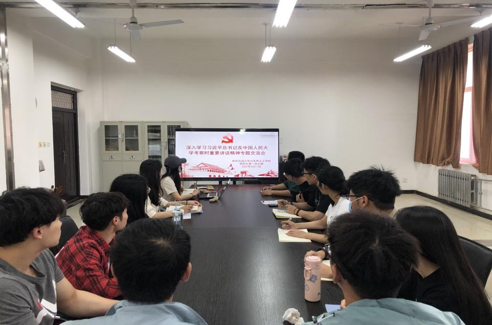 2022年5月17日上午,馬克思主義學院研究生第一黨支部在鄠邑校區崇文樓325會議室召開會議,專題學習習近平總書記在中國人民大學考察時重要講話精神,會議由黨支部宣傳委員劉笑含主持,支部全體黨員、積極分子參加。