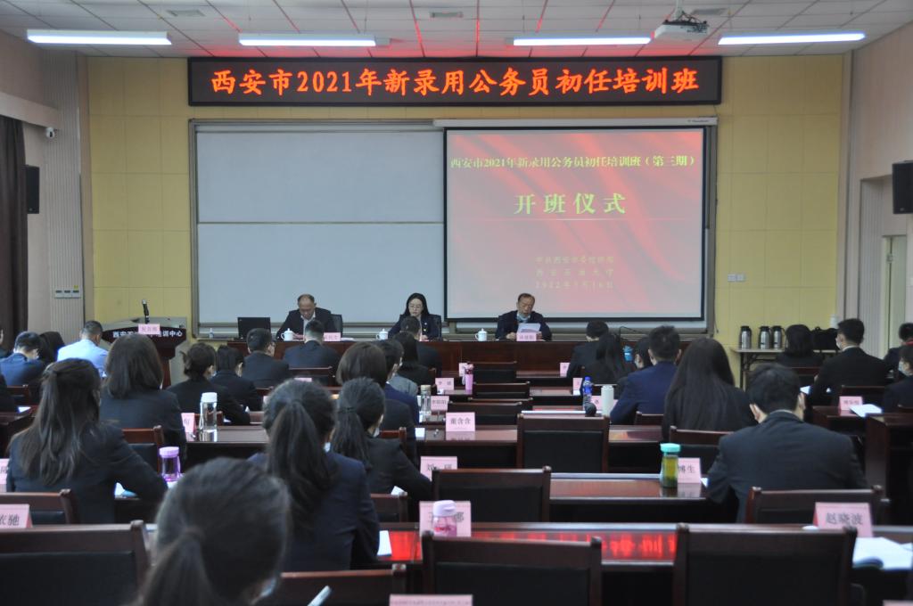 長安五月春意濃,細雨初過萬象新。5月16日,由西安市委組織部主辦、我校承辦的“西安市2021年新錄用公務員初任培訓班(第三期)”在我校明德校區順利開班。西安市委組織部公務員二處處長韓林儒、繼續教育學院院長談建勤以及來自全市市級機關、各區縣的47位學員參加開班儀式。儀式由繼續教育學院副院長吳民生主持。