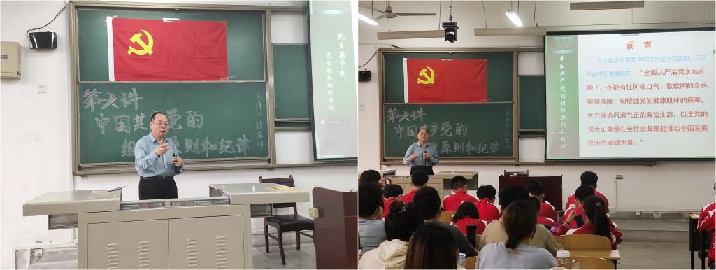 課堂上,彭革偉老師以黨的十九屆六中全會精神為切入點,結合我黨發展的歷程,對中國共產黨的組織原則和紀律進行了全面的闡述。多次引用習近平總書記的重要講話,深入淺出地為同學們講述了嚴守黨的紀律的重要性和現實意義。他強調,黨的紀律是維護黨的團結統一,保持黨的先進性和純潔性,增強黨的凝聚力和戰斗力,實現黨的綱領、路線和任務的重要條件和可靠保證。他希望全體黨員牢記初心使命,堅定理想信念,踐行黨的宗旨,永遠保持同人民群眾的血肉聯系,始終同人民想在一起、干在一起,風雨同舟、同甘共苦,繼續為實現人民對美好生活的向往不懈努力,努力為黨和人民爭取更大光榮!他希望全體入黨積極分子都能用黨員的標準嚴格要求自己,積極向黨組織靠攏,爭取早日成為一名光榮的共產黨員。