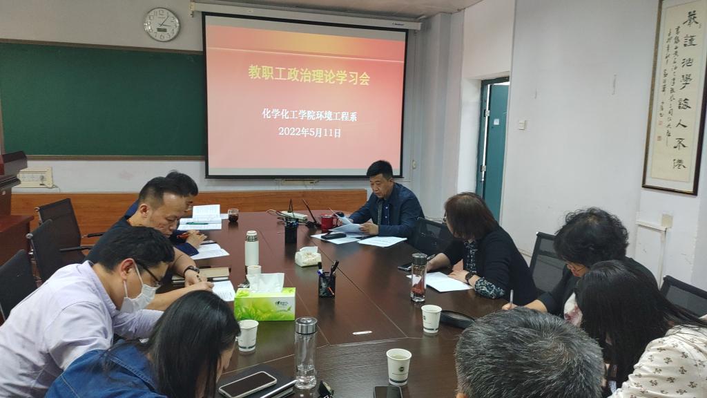 為更好貫徹落實《西安石油大學教師政治理論學習制度》,發揮基層支部黨建引領作用,結合學院黨委關于做好巡視整改落實暨教育領域突出問題專項整治工作推進會的具體安排,5月11日下午,化學化工學院環境工程系在雁塔校區2號實驗樓212會議室召開了全體黨員、教師政治理論學習會。會議由環境工程系教工黨支部書記屈撐囤主持,支部全體黨員和環境系教師共14人參加了會議。
