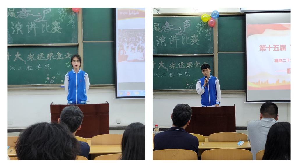 為了深入貫徹愛黨敬黨理念,學習黨領導的百年中國青年運動光輝歷程,鼓舞當代大學生在校時期樹立遠大的理想,努力奮斗,為社會主義現代化建設與新時代的建設貢獻力量,石油工程學院第十五屆“春之聲”主題演講比賽決賽于5月6日在博思樓121室成功舉辦。石油工程學院黨委副書記張建高、石油工程學院學生工作辦公室主任朱戰威,2018級輔導員聶康晨、2020級輔導員祖力皮亞老師蒞臨本次活動現場,15名參賽選手及部分學生干部參與了本次活動。