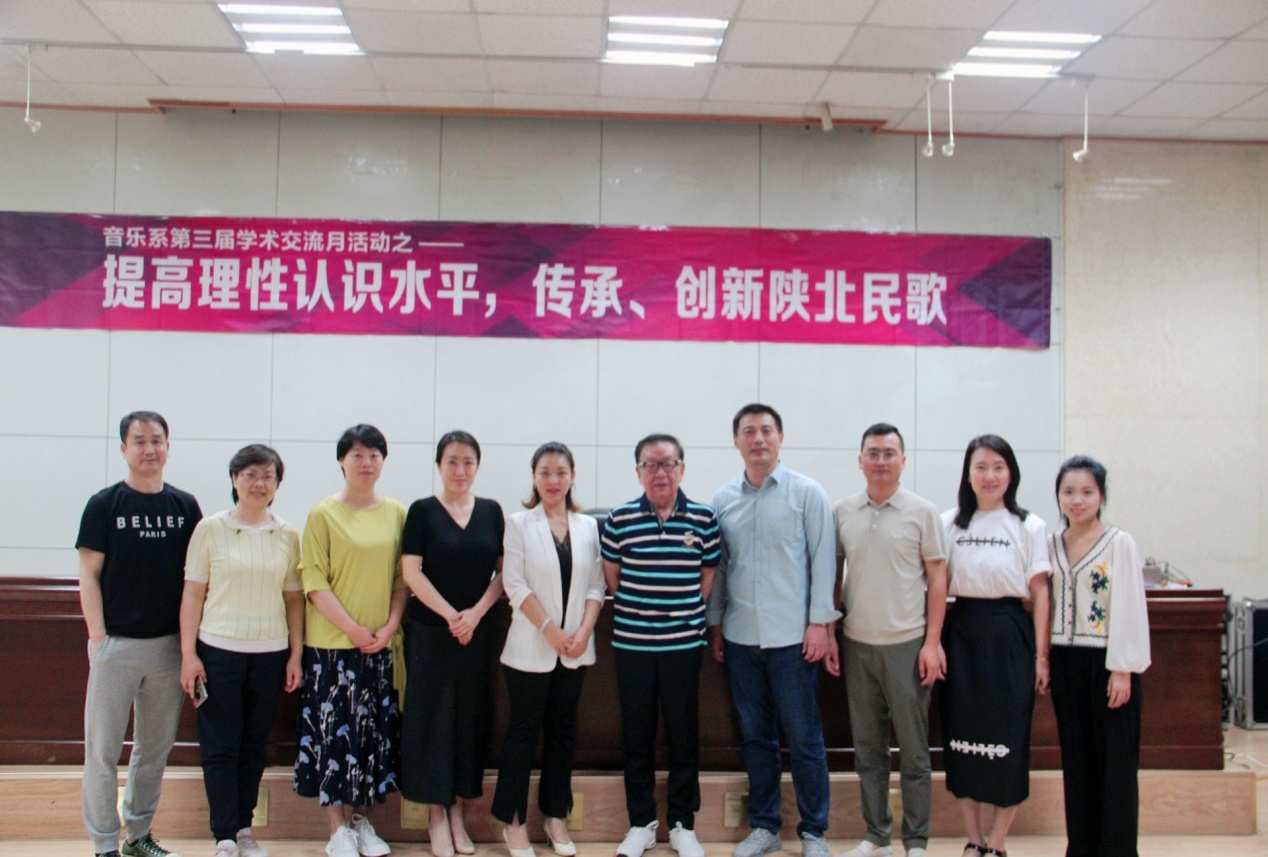 2022年5月6日,音樂系第三屆學術交流月之----《提高理性認識水平,傳承,創新陜北民歌》在我校西階第三會議室成功舉辦。我系邀請國家一級作曲家、中國音樂學院特聘教授王建民主講。音樂會按照學校疫情防控要求,進行了線上線下實況直播。系黨總支書記孟開元、副主任張帆以及部分教師、學生出席了本場音樂會。