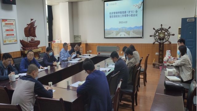 4月22日,經濟管理學院在雁塔校區東方石油樓1507會議室召開黨委(擴大)會暨思想政治工作領導小組會議。通報和研判學生思想政治教育有關情況,安排學院課程思政建設工作,深入推進巡視整改任務落實。學??倳嫀煼畷悦癯鱿瘯h并講話,學院領導、黨委委員、各系主任、辦公室主任和教職工黨支部書記參加會議。會議由學院黨委書記王宏衛主持。