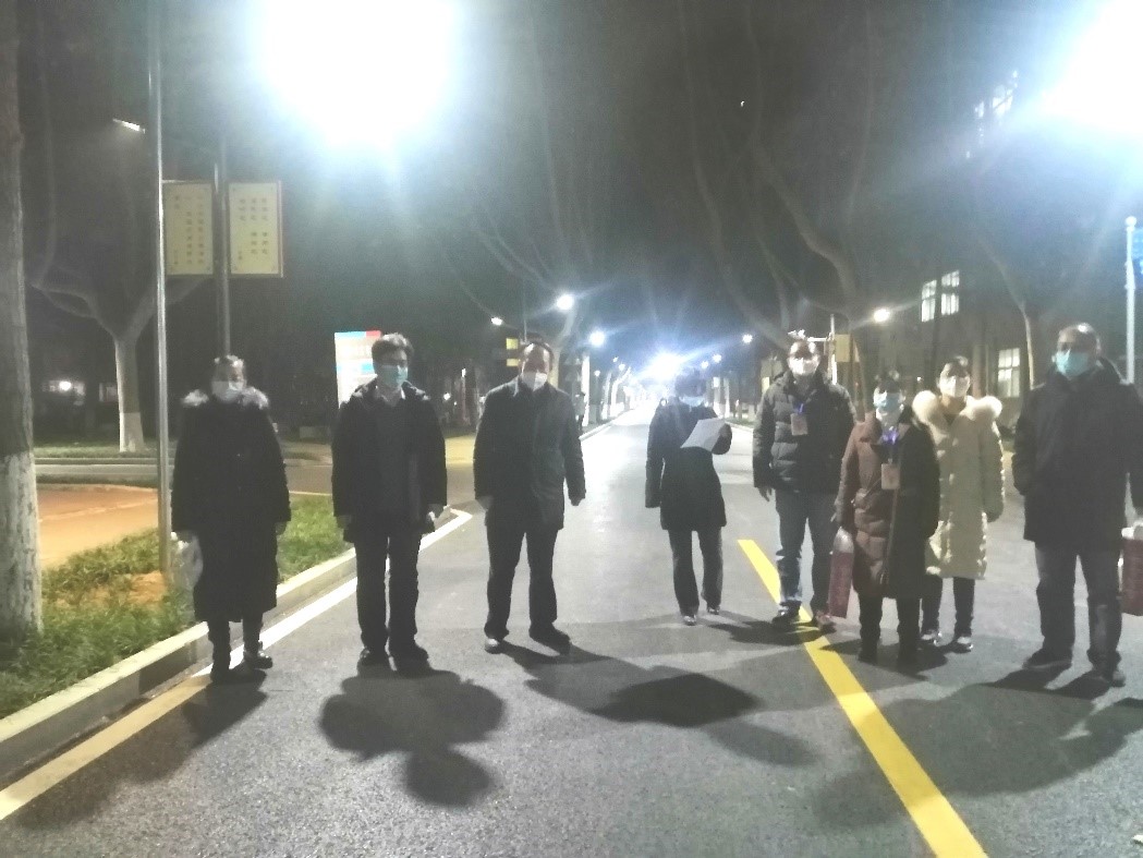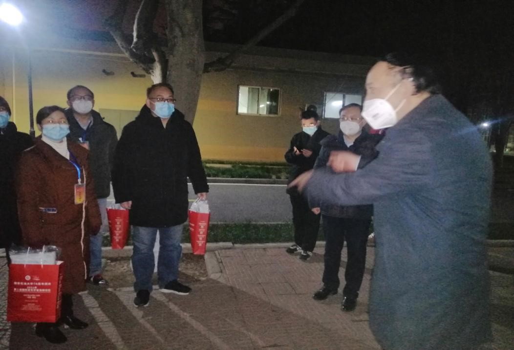 學院黨委書記宋海洋帶領學院黨員先鋒隊老師們分三組到雁塔校區1、2、3號樓看望研究生并發放防疫口罩。