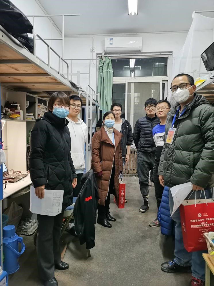 12月31日,是2021年的最后一天,也將迎來萬象更新的2022,今年的這個時間所有西石大同學堅決不走出宿舍,用自己的方式支持三秦兒女眾志成城抗擊新冠肺炎疫情,材料科學與工程學院老師們通過線上祝福和宿舍慰問的方式將新年的祝福帶給所有研究生。