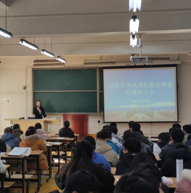 12月14日下午,石油工程學院在雁塔校區東階301教室召開2021級研究生考風考紀教育暨誠信教育大會,學院黨委副書記張建高、科研與研究生辦公室主任王小香和2021級全體研究生共150余人參加了會議,會議由學院研究生輔導員宋興淼主持。