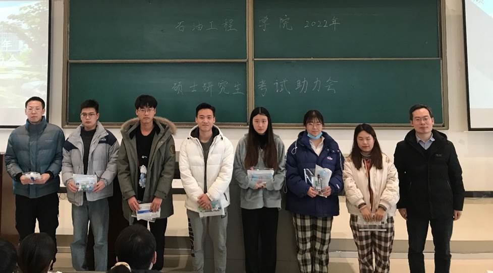 為進一步助力和服務我院考研學子,12月14日下午,石油工程學院在鄠邑校區開物樓115教室舉辦2022年碩士研究生考試助力大會,向考研學生發放愛心加油包并幫助學生排解備考沖刺的壓力。石油工程學院黨委書記馬勇、黨委副書記張建高、學工辦主任朱戰威和學院全體考研學生參加會議,會議由2018級輔導員聶康晨主持。
