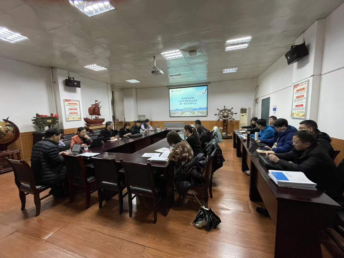 12月10日, 經濟管理學院2022年國家基金項目第一輪論證研討會在雁塔校區東方石油樓1507會議室召開。經濟管理學院院長王君萍,副院長李俊亭,科研與研究生辦公室主任武歡,以及參與2022年國家基金項目申報的教師和已成功申報往年國家基金項目的教師代表參加研討會。
