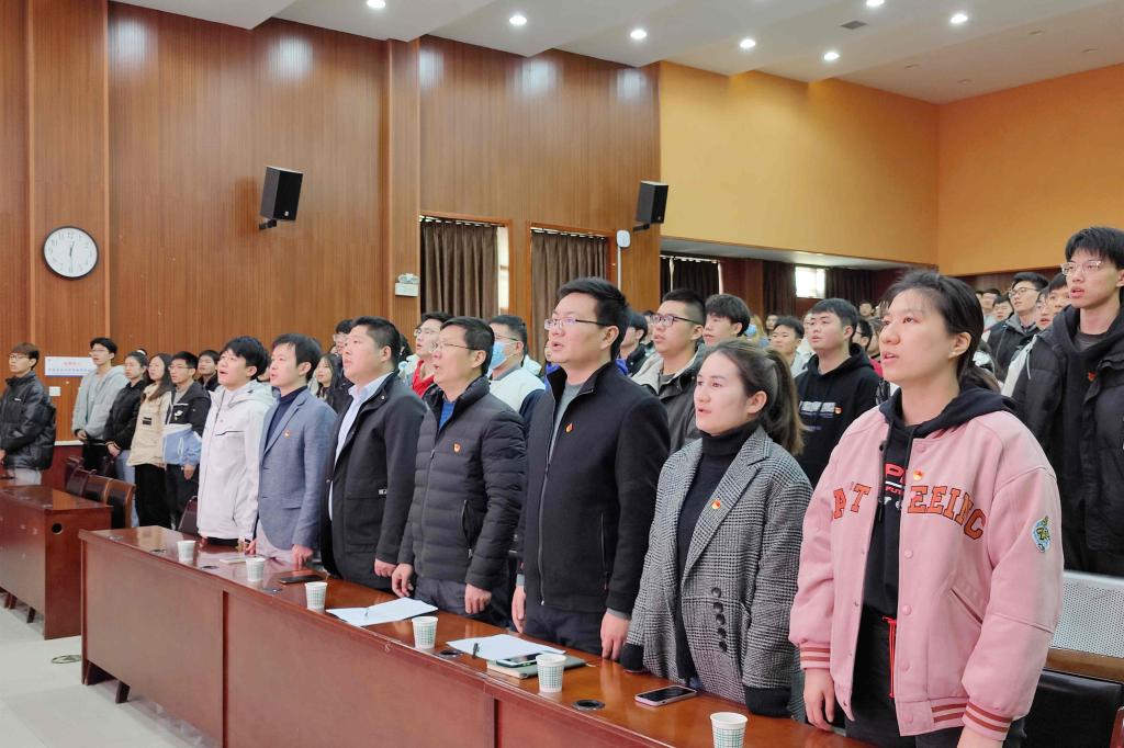 為加強學生黨員教育管理,進一步增強學生政治意識,豐富“三會一課”及主題黨日的開展形式,12月3日上午,石油工程學院在鄠邑校區崇文樓118就業多功能廳成功舉辦了我院第四屆黨員“政治生日”會暨入黨宣誓活動,為2021年12月加入中國共產黨的65名預備黨員和順利轉正的88名學生黨員集體過“政治生日”。學院黨委書記馬勇老師、學生工作辦公室主任朱戰威老師及各年級輔導員出席,院學生黨建辦公室干部、學生黨支部委員及黨員代表參加了本次會議。