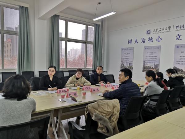 12月8日上午,西北農林科技大學語言文化學院副院長王寶平﹑俄語系系主任張善之,俄語系教師曹嘉琪一行三人來我校外國語學院走訪交流,調研俄語系專業建設情況。外國語學院副院長陳武、俄語系系主任李娜、俄語系專業負責人孫婷、俄語系教師羅蝴蝶以及外國語學院教學辦李洋甜參加了此次座談會。