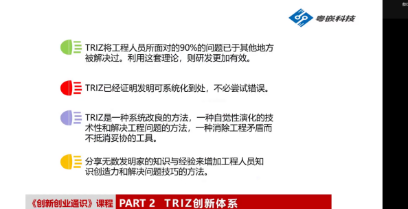 本次課程由粵嵌科技全國運營項目項目經理蔡佳祥主講,他從“傳統創新方法、TRIZ創新體系、TRIZ發明與創新規則、TRIZ原理與方法”四個方面,“產品設計及生產”兩個維度對創新思維進行講解,并在傳統創新理論的基礎上對TRIZ理論進行講解和闡述。