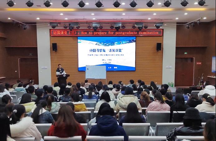 任春生老師以“How to prepare for postgraduate examination”為題,結合自己執教過程中經歷和經驗,講述了考研動機的重要性、考研過程中的誤區、考研深造的可選方向、跨專業考研的可選專業,著重闡述了與學院專業相關的語言學、翻譯、國別研究、文學、英語測試學等同源學科方面的具體內容。隨后,任老師對第二外語學習和使用情況進行分析,講解了不同語言和專業結合的發展前景,希望同學們根據自身發展規劃選擇適合自己的第二外語。在交流環節,任老師與在場同學進行了充分的互動交流,對同學們提出的問題進行了一一解答,幫助同學們對考研有了更深一步的認識與了解。
