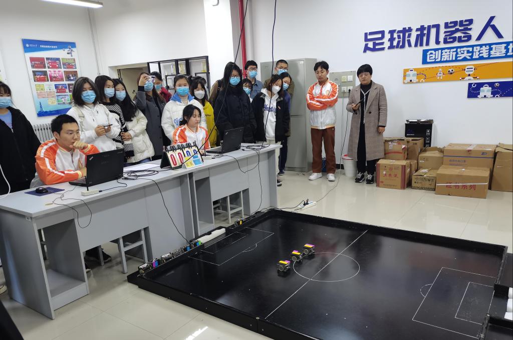 在創新創業中心老師和工作人員的講解帶領下,同學們分組參觀了“石大學生眾創加油站”“足球機器人創新實踐基地”等項目,感受創新創業和創新思維帶來的科技進步和對社會發展的貢獻,對創新科技產生濃厚的興趣。