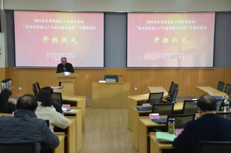 12月1日上午,由省委組織部主辦、我校干訓基地承辦的2021年秋季陜西省干部教育培訓“推動創新鏈與產業鏈的融合發展”專題研修班在我校明德校區培訓中心順利開班,來自省直機關單位、縣(市、區)政府的50余名領導干部參加了開班儀式,繼續教育學院副院長吳民生出席開班儀式并致歡迎辭。