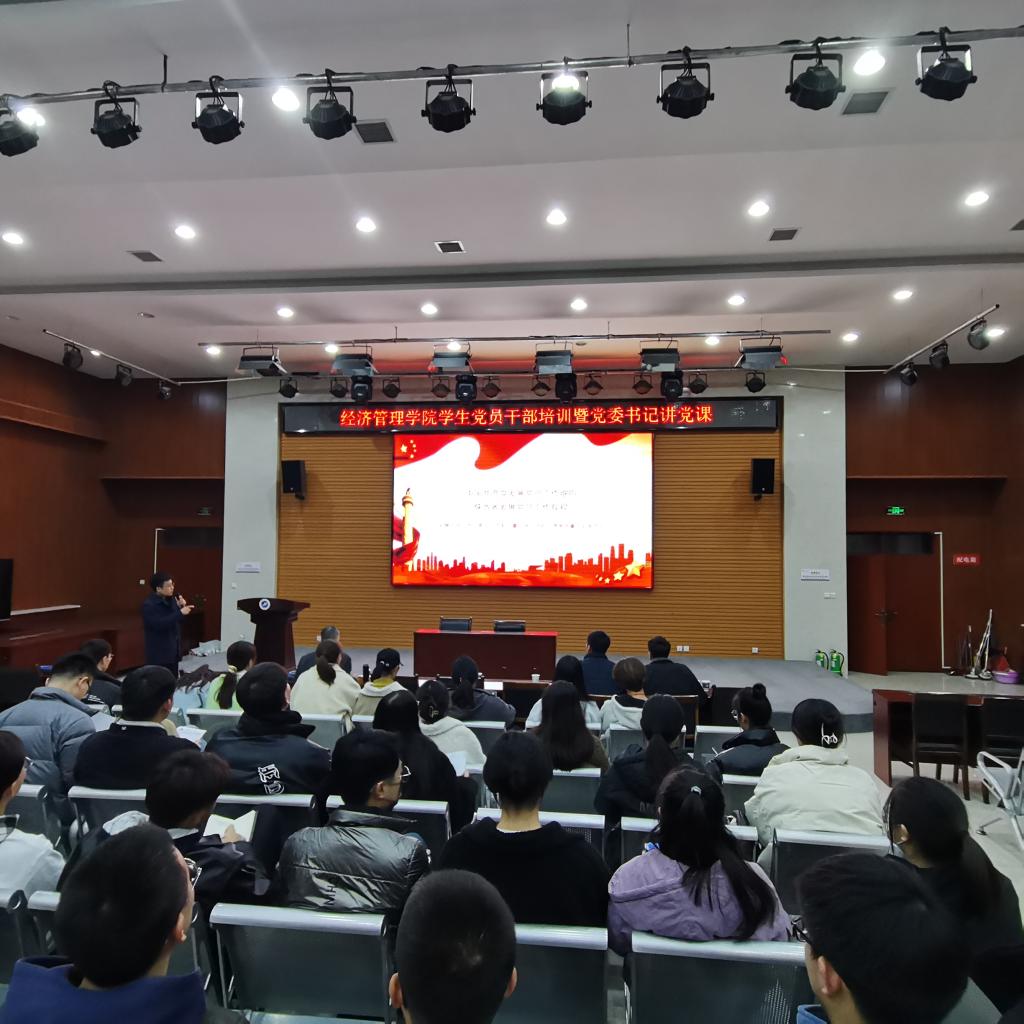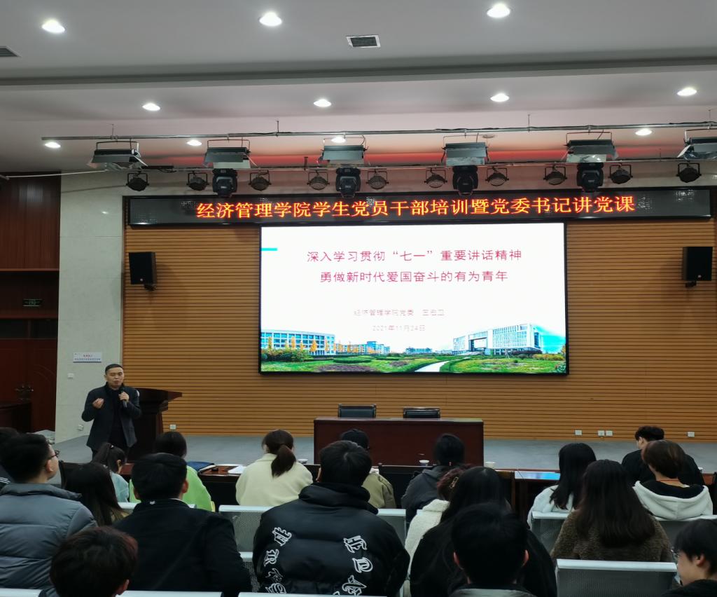 為深入貫徹落實黨的十九屆六中全會精神和習近平總書記“七一”重要講話精神,深刻領悟黨的百年奮斗重大成就和歷史經驗,增強學生黨員干部修養,增強學院黨建工作實效,11月25日,經濟管理學院在鄠邑校區崇文樓就業指導中心多功能廳舉辦“經濟管理學院學生黨員干部培訓暨黨委書記講黨課”專題活動。學院黨委書記王宏衛、黨委組織部組織科科長趙紀飛出席本次活動,學生工作辦公室主任李博文,輔導員王業林,鄠邑校區學生黨支部書記、委員及學生黨建工作辦公室全體成員參加本次培訓活動。