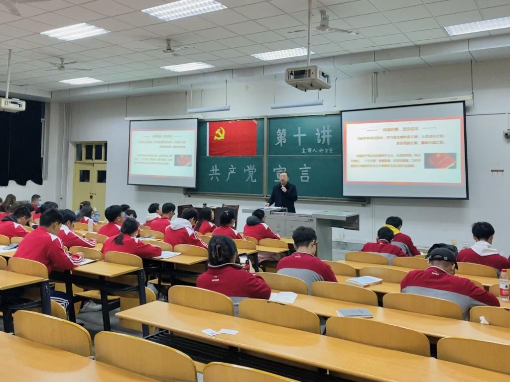 課堂上,種老師以“閱讀經典,堅定信念”為題,帶領同學們對《共產黨宣言》的歷史背景,主要內容和基本原理以及對中國的影響等內容進行了全面學習。種老師強調,共產黨宣言》作為馬克思和恩格斯為世界上第一個國際性的無產階級政黨——共產主義者同盟起草的綱領,是科學社會主義誕生的標志,是改變歷史格局的重要著作。希望同學們學好用好《共產黨宣言》等馬克思主義經典著作,堅持學以致用、用以促學,熟讀精思、學深悟透。