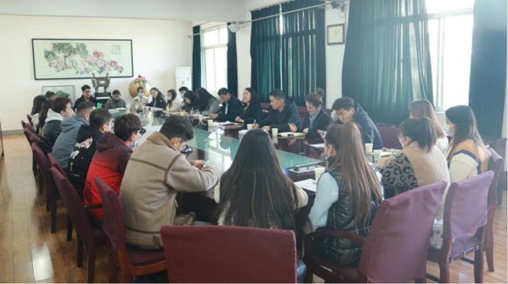 學生工作部部長王亮對教育協調小組的到訪表示歡迎,對協調小組給予學校工作的關心、支持和指導表示感謝,并介紹了學校的辦學特色和相關工作開展情況。龐秉謙副部長匯報了學校少數民族學生教育管理服務工作情況,介紹了開展少數民族學生學業指導、資助幫困、就業幫扶、心理輔導、生活服務等工作的基本經驗、做法和成效,重點介紹了“絲路文化節”“民族團結進步月”系列活動在促進民族團結進步、鑄牢中華民族共同體意識方面發揮的積極作用。