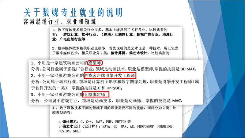 楊文陽老師對本專業的考研情況進行了詳細講解,尤其針對數媒專業的考研方向回答了同學們普遍關心的院校和專業選擇困惑,楊老師指出,數媒專業考研分為兩個方向,即數字媒體技術和數字媒體藝術。技術是以計算機為基礎進行,歸結于后臺實現、前端開發等。藝術則側重設計、美術方面,楊老師希望考研同學能夠盡早確定考研方向,有利于自己盡早做出相應的規劃。