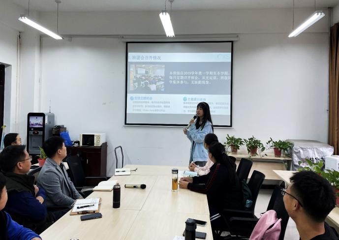 為強化示范引領,學院組織2019級本科班委工作交流匯報會。2019級各本科班級分別從班級基本概況、思想建設、組織建設、學風建設、學生工作、第二課堂開展情況、下一步工作計劃等方面進行了全面匯報和經驗分享,為低年級同學進行了生動全面地班級風采展示。院黨委副書記王業青要求全體班委充分認識班級建設的重要意義,積極發揮主觀能動性,團結帶領班級同學不斷推進班級建設;全體同學充分發揮主人翁精神,用個體貢獻推動班級建設,用個人成績支撐班級發展,努力打造成績優良、作風優良、素質過硬的優秀班級。