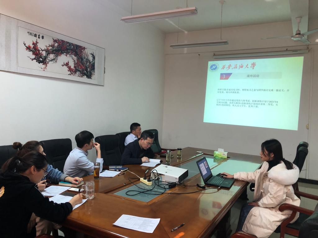 會議開始,李剛老師對《西安石油大學中國石油獎學金實施辦法》和《關于做好2021年中國石油獎學金評審工作的通知》進行了解讀,對學院的評審細則和流程進行了說明,簡單介紹了進入學院答辯環節學生的基本情況。接著張建高副書記向各位候選學生強調評審過程將嚴格按照學校要求進行評定,堅持公平公正公開的原則,希望每名同學認真答辯,展示自己的真實風采。隨后,各年級候選人依次對上一學年在思想、學習、工作、生活等方面所取得的進步進行了總結,對自己的申請理由做了全面的闡述,并依次回答了評委老師的提問。會議最后,學院評審小組根據各候選人上學年的學習成績、思想道德素質以及現場答辯情況等方面的表現綜合考慮,確定出了擬獲獎學生名單,并對評審結果進行了公示。
