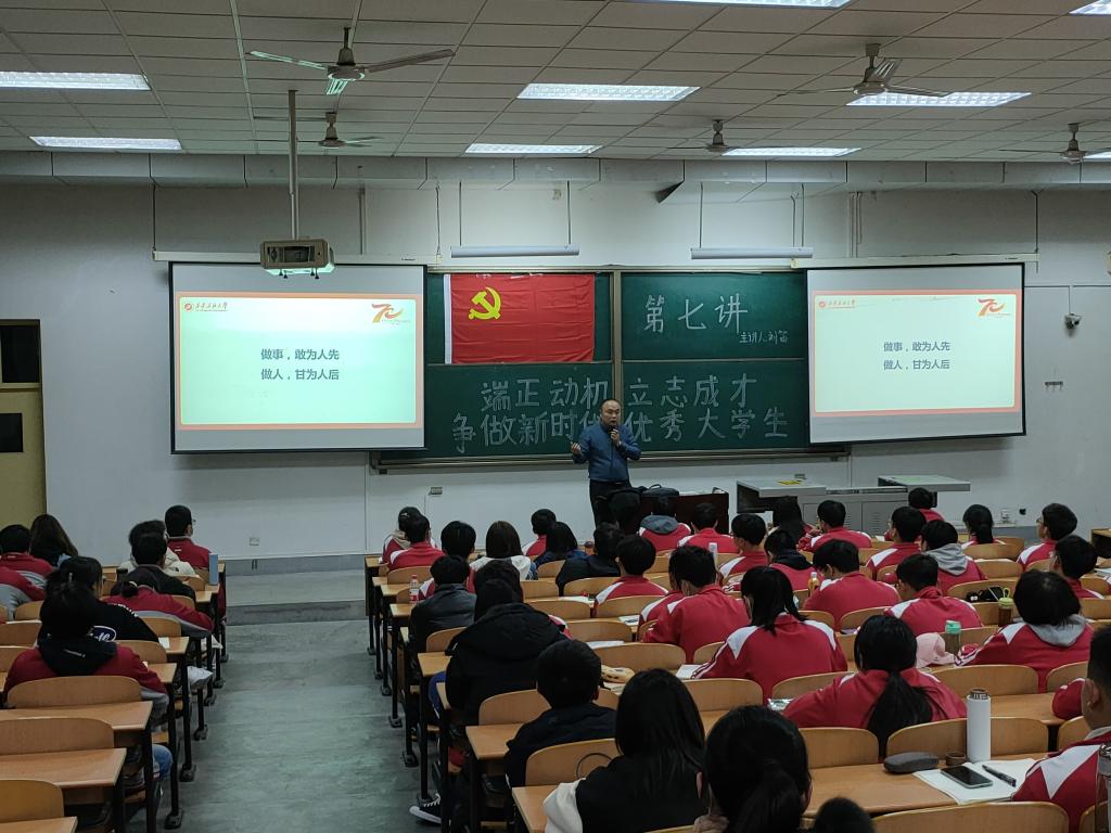 2021年11月17日19時,電子工程學院第二十一期入黨積極分子培訓班第七講在鄠邑校區博覽樓239教室進行。本次黨課的主題為端正動機立志成才,爭做新時代優秀大學生,學生工作部副部長劉笛老師擔任主講,我院91名入黨積極分子參加此次學習。